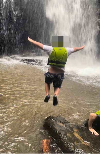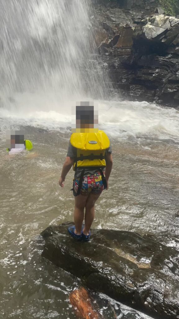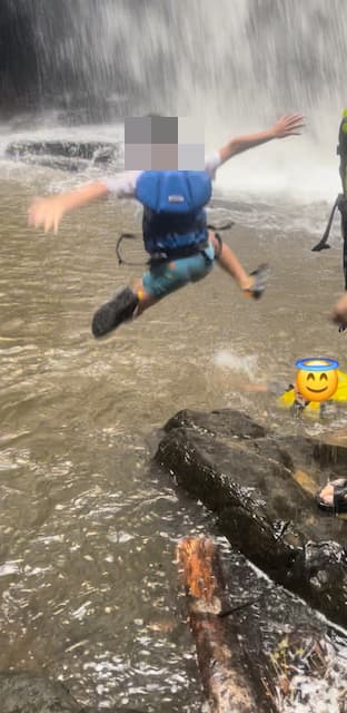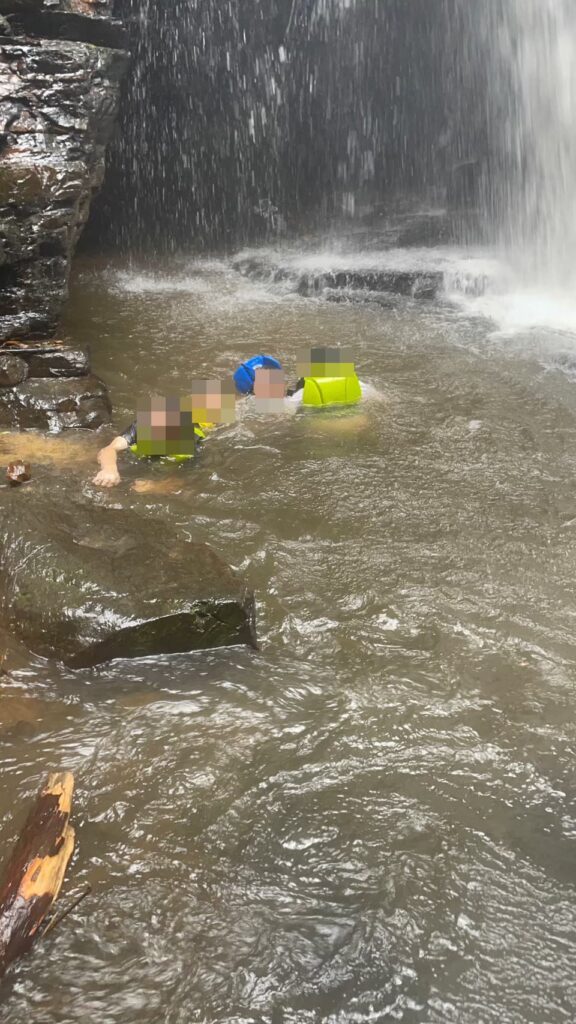 30分くらい漕いで休憩地点の滝スポットへ到着!